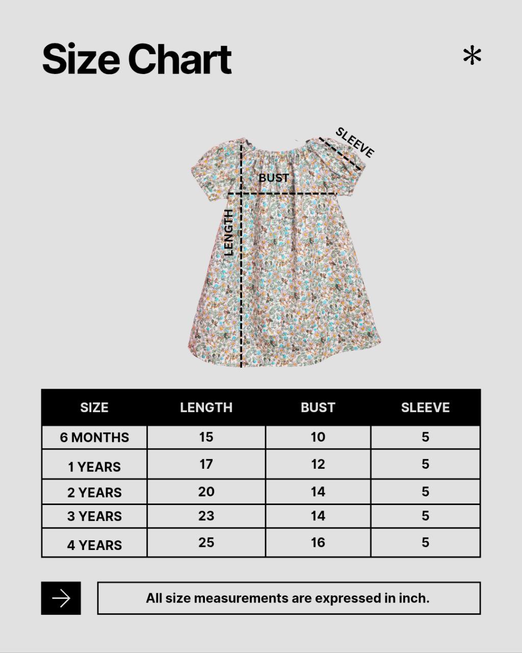 Dress Aruna adalah baju kanak-kanak perempuan yang sesuai untuk umur 6 bulan
